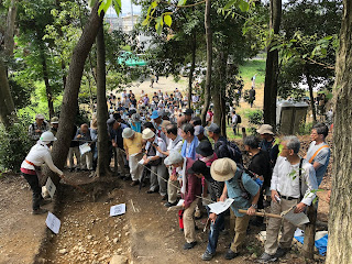 考古学実習3班が終了しました。現地説明会のあった31日は、心配していた雨予報がはずれて晴天に恵まれました。同日午前に開催された城陽市芝山遺跡(京都府埋蔵文化財センター)での周知もあり、現地説明会には約290名の来訪者がありました。